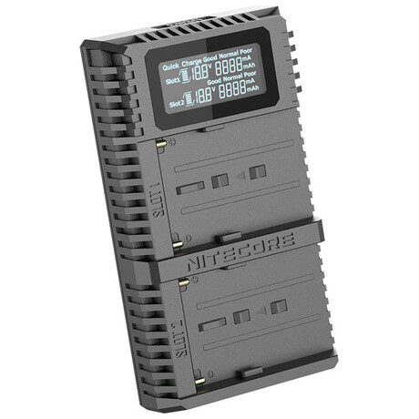 Επαγγελματικός διπλός φορτιστής για μπαταρίες φωτογραφικών μηχανών Sony, ιδανικός για γρήγορη και ασφαλή φόρτιση δύο μπαταριών ταυτόχρονα. Διαθέτει ευανάγνωστη οθόνη και προηγμένα συστήματα προστασίας.