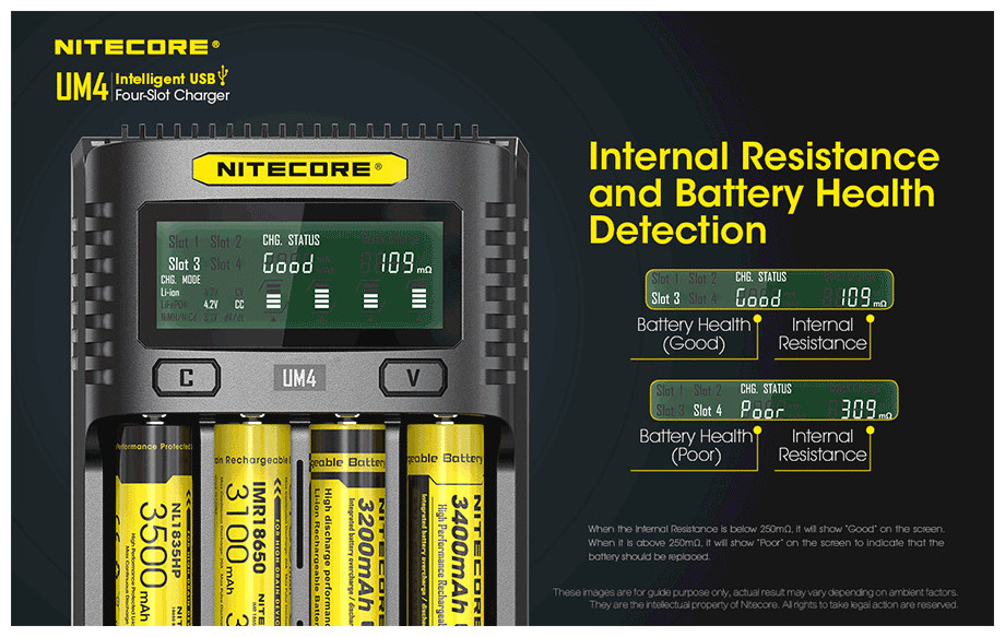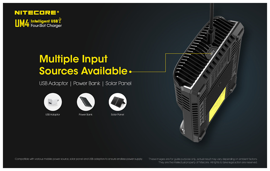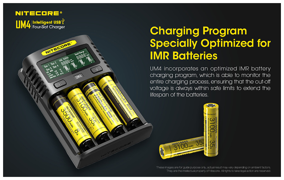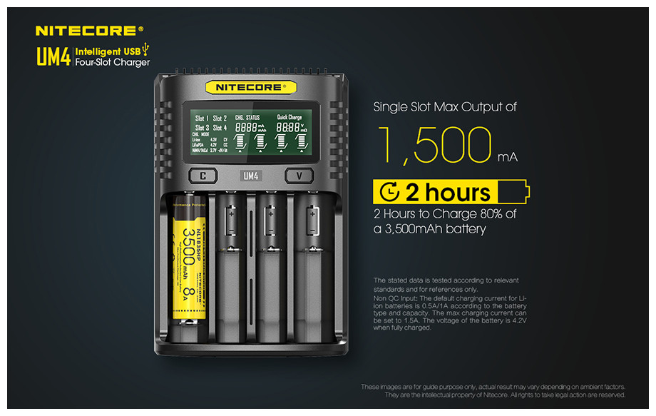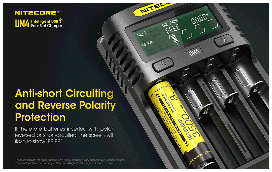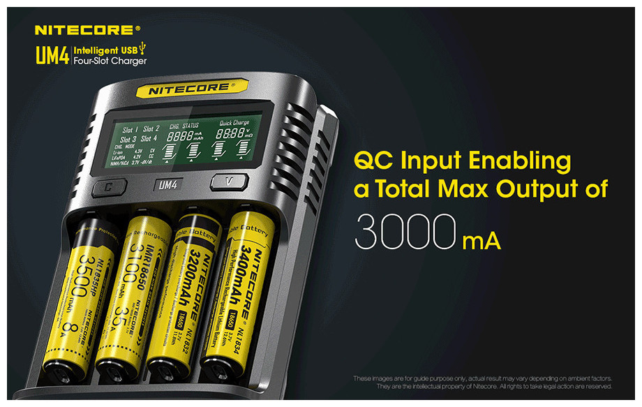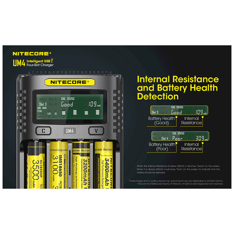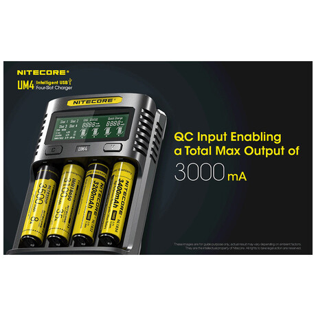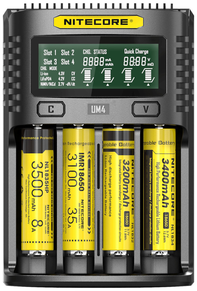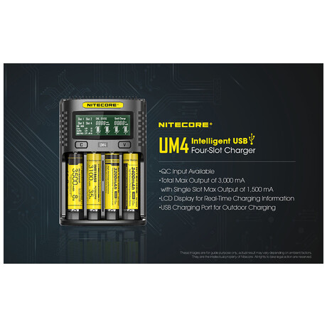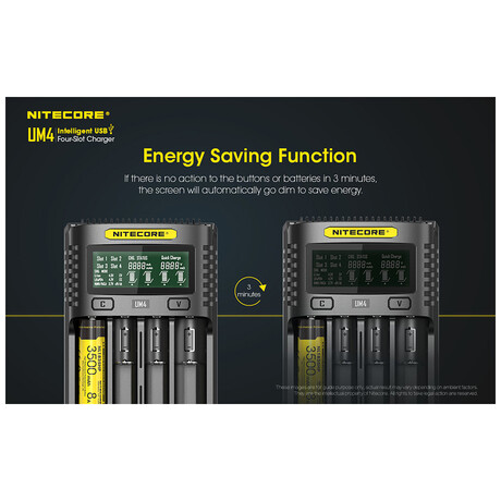 NiteCore UM4 Φορτιστής 4 Μπαταριών Li-ion/Ni-Cd/Ni-MH Μεγέθους AA/AAA/D/18650