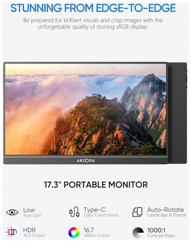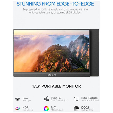 Arzopa A1M IPS HDR Φορητό Monitor 17.3" FHD 1920x1080