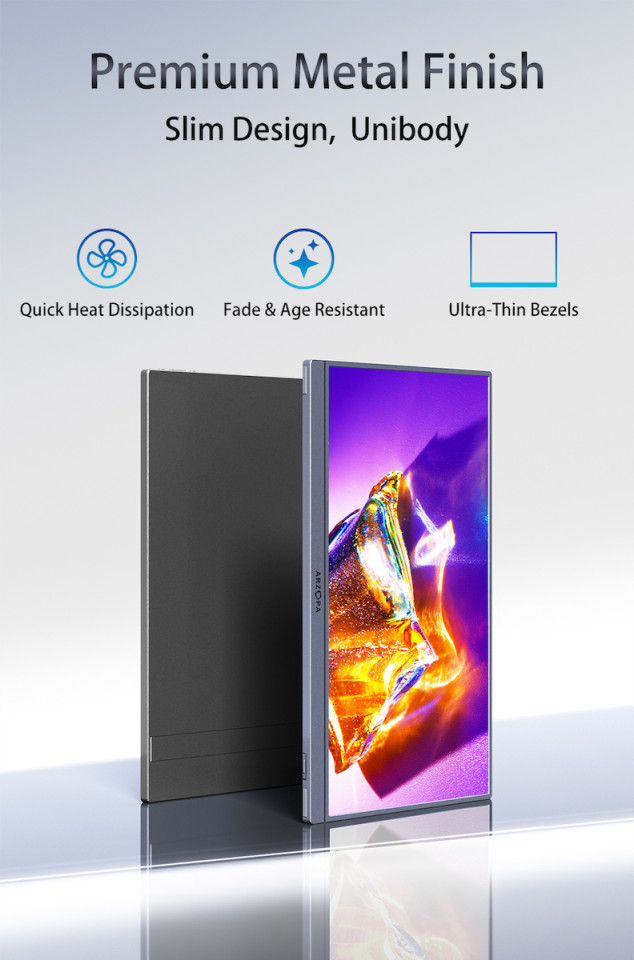The ARZOPA A1S is an ultra-slim and lightweight 14-inch portable monitor, perfect for professionals, travelers, and gamers who need a second screen anywhere. With a thickness of just 0.16 inches and a weight of 1.1 pounds, it’s extremely easy to carry.