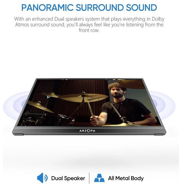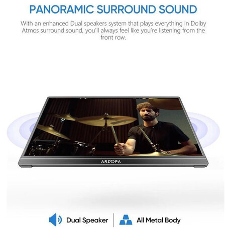 Η ARZOPA S1 Table είναι μια φορητή οθόνη 15,6 ιντσών Full HD, σχεδιασμένη για να αυξάνει την παραγωγικότητα και την άνεση στην εργασία, στο σπίτι ή εν κινήσει. Η οθόνη IPS 1080P με anti-glare επιφάνεια προσφέρει καθαρή εικόνα, ζωντανά χρώματα και άνετη θέαση χωρίς αντανακλάσεις.