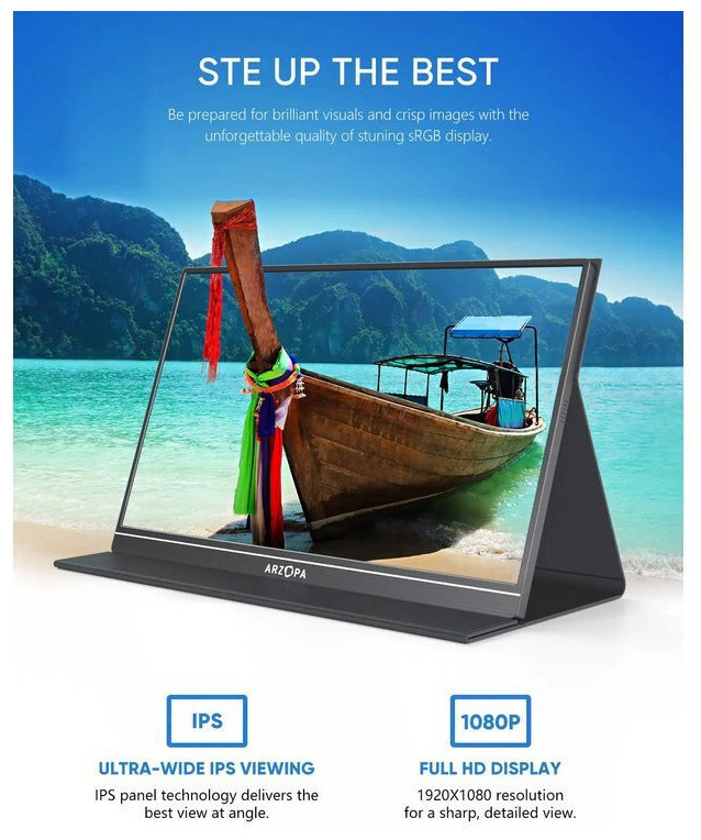 The ARZOPA S1 Table is a 15.6-inch Full HD portable monitor designed to enhance productivity, multitasking, and entertainment wherever you are. Featuring an IPS 1080P anti-glare display, it delivers sharp visuals, accurate colors, and comfortable viewing.