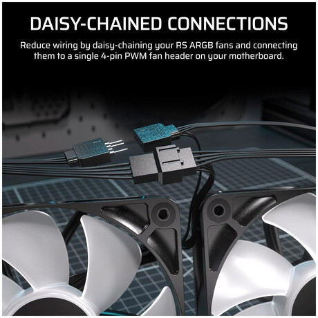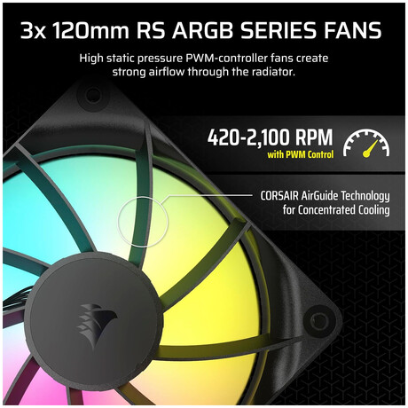• RS120 ARGB fans deliver high airflow, static pressure, and low noise