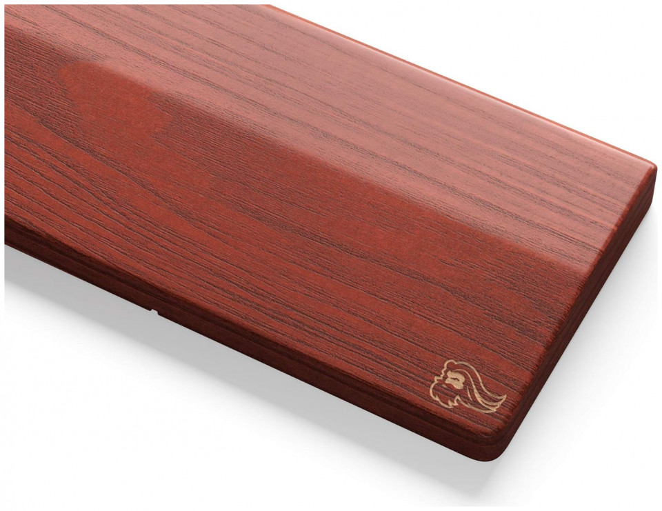 The wrist rest from Glorious in the red-brown version offered here is intended as an optional accessory and can of course be used universally. With dimensions of 43 cm wide, 10 cm deep and a maximum of 2.5 cm high, it fits ideally in front of any type of full-size keyboard. Only the highest quality materials were used, which is why the entire palm rest is made of fine wood (American ash), which is particularly easy to clean with water thanks to the red-brown protective coating. The underside, on the other hand, is based on a non-slip rubber base and thus prevents the pad from slipping unintentionally.