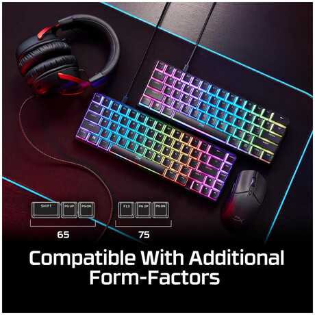 The full key set is compatible with HyperX and most mechanical keyboards, and includes support for 65% and 75% keyboards. They complement the exposed LED design of HyperX mechanical key switches.