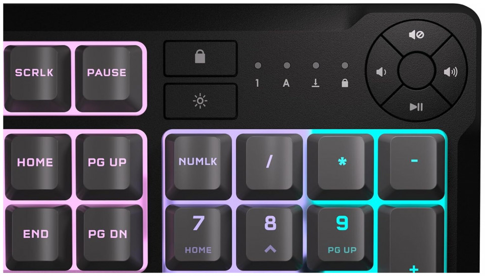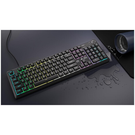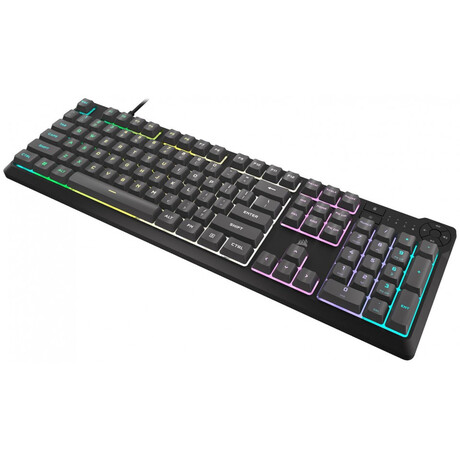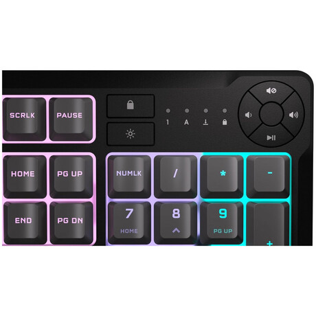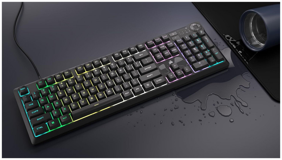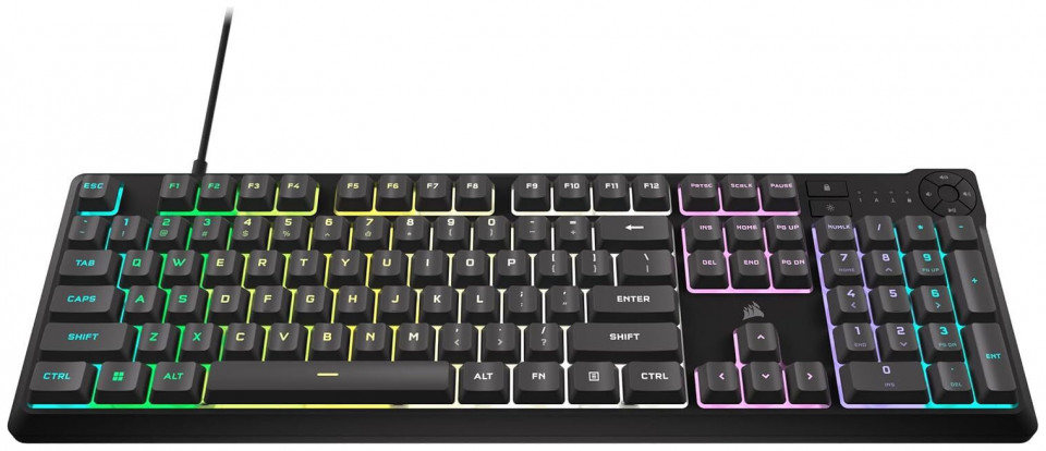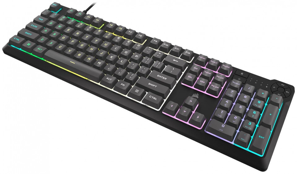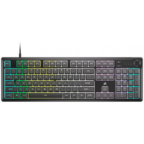 Gaming πληκτρολόγιο της εταιρείας Corsair με RGB φωτιζόμενα πλήκτρα σε γλώσσα αγγλικά US. Χρησιμοποιεί τεχνολογία μεμβράνης, όπως και η πλειοψηφία των συμβατικών πληκτρολογίων της αγοράς. Σε αντίθεση με ένα μηχανικό, το πληκτρολόγιο μεμβράνης είναι αθόρυβο, καθώς δεν έχει ιδιαίτερη αίσθηση κατά την πληκτρολόγηση και είναι συνήθως πιο οικονομικό. Ως full size, διαθέτει όλα τα πλήκτρα ενός τυπικού keyboard μαζί με τα αριθμητικά στο δεξί μέρος του. Προσφέρει πλήκτρα macro, προγραμματιζόμενα κενά πλήκτρα δηλαδή, στα οποία μπορείτε να αναθέσετε κάποια λειτουργία για συγκεκριμένες ενέργειες που επιθυμείτε να γίνονται πιο γρήγορα, συνήθως σε παιχνίδια MMO ή MOBA.