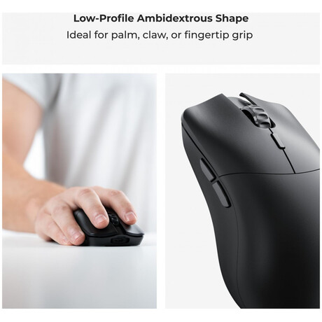 Its enclosed shell maximizes mouse-hand contact for peak comfort. High-grip surface texturing ensures confident control of the mouse, even when sweating.
