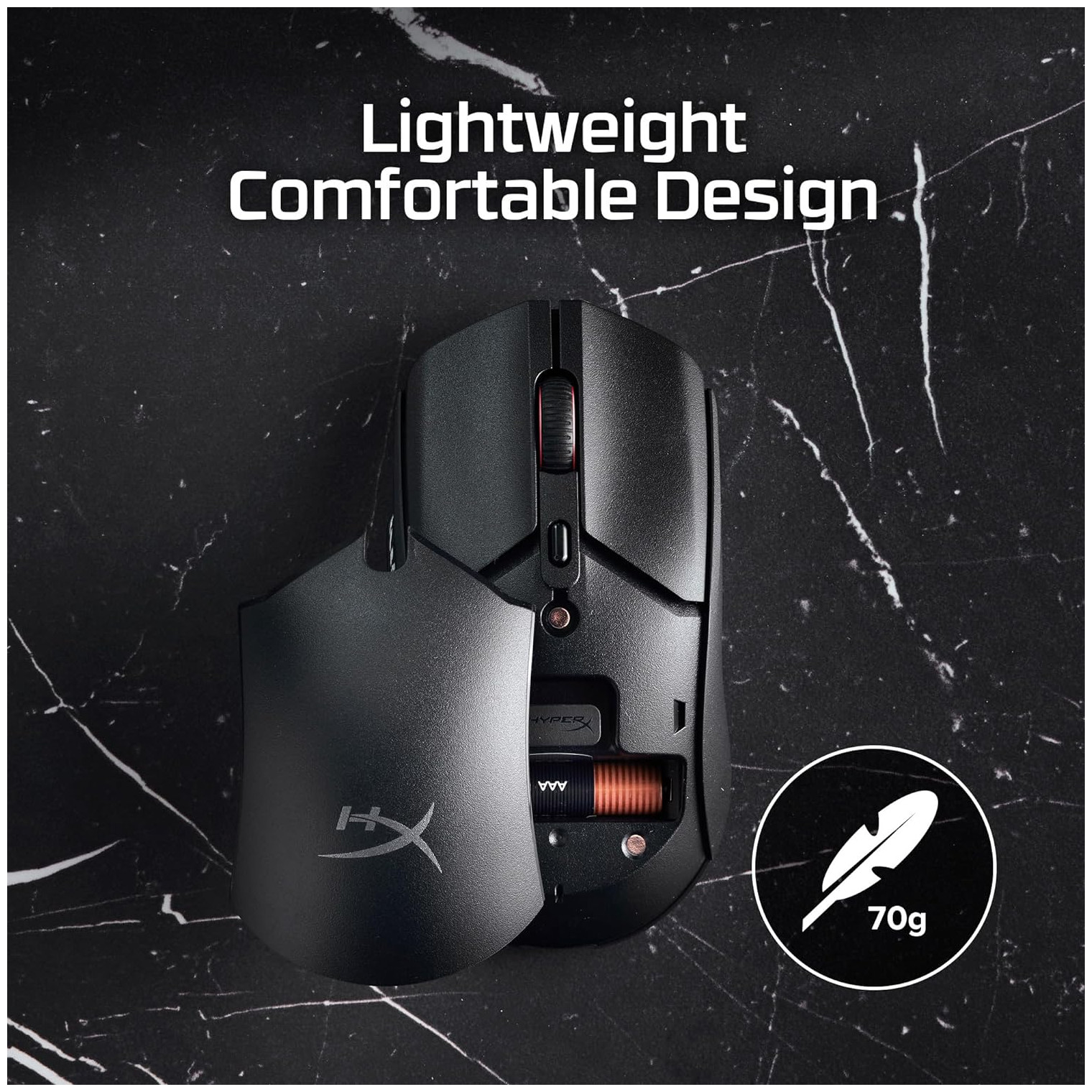 Step into the world of high-end gaming gear with the HyperX Pulsefire Haste 2 Core Wireless. This economical alternative to the original Pulsefire Haste 2 features a familiar symmetrical shape in a lightweight frame with an operating weight of only 70 grams. Powered by a single AAA battery, this mouse can game via highspeed 2.4GHz connection for up to 100 hours. Or switch to Bluetooth mode for even longer battery life with a reduced polling rate, perfect for casual gaming. Inside you’ll find the HyperX Custom Core Sensor, capable of up to 12,000 DPI with a maximum polling rate of 1,000Hz to execute quick actions and smooth sweeping movements. You can also count on the durable and tactile TTC Gold switches to keep you gaming with a lifespan of up to 20 million clicks. Making those movements easier are the low-friction skates that glide across cloth mouse pads with ease. Connecting to HyperX NGENUITY Software unlocks the full potential of the Pulsefire Haste 2 Core Wireless. There you can quickly reassign vital functions and macros to the 6-button interface, set precise DPI levels for pin-point tracking, adjust the polling rate to fine-tune performance, and even customize RGB lighting and effects to fit your unique style. The Pulsefire Haste 2 Core Wireless is also certified to work with NVIDIA®️ Reflex to optimize end-to-end system latency with compatible monitors.