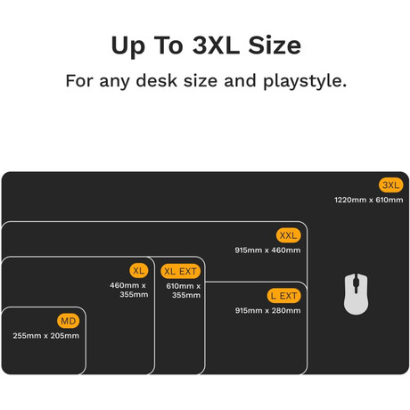 • Extra-large size (XXL): προσφέρει χώρο 460 mm x 915 mm (18″ x 36″) για να καλύψει πλήρως το χώρο ποντικιού + πληκτρολογίου.