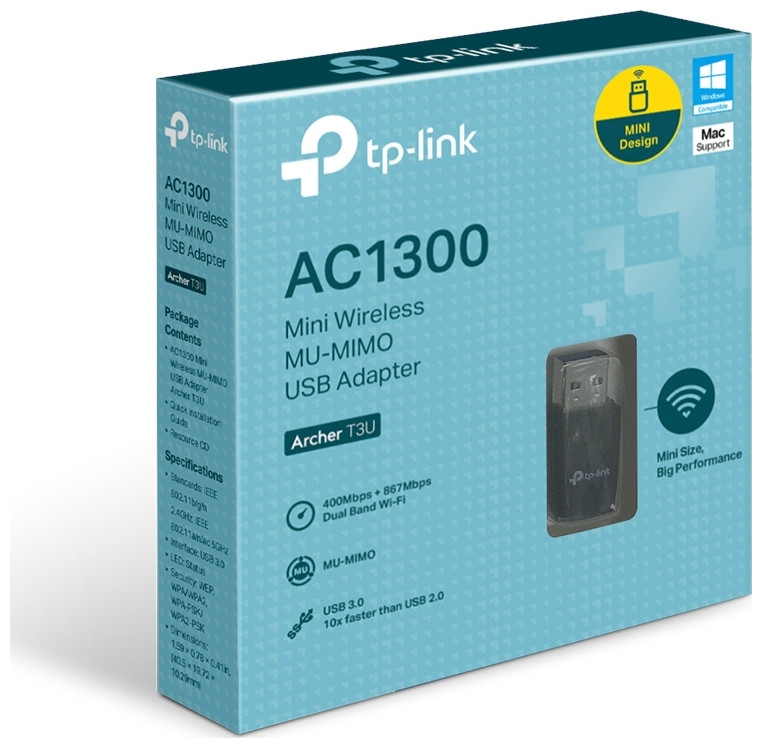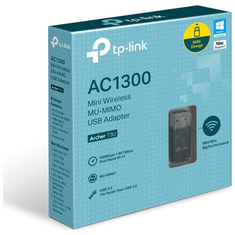 Το Archer T3U AC1300 Ασύρματο Dual Band USB Adapter της Tp-link διαθέτει ασύρματες ταχύτητες 1300Mbps (400Mpbs στα 2,4 GHz και 867 Mbps στα 5GHz), με υποστήριξη στο πρότυπο Wi-Fi 802.11ac επόμενης γενιάς.