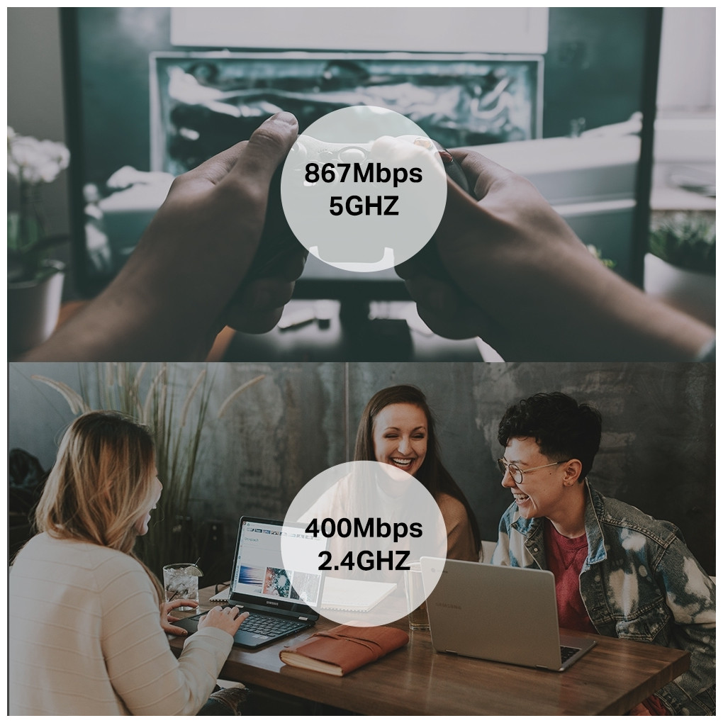 Με ασύρματη τεχνολογία AC το Archer T3U παρέχει συνδέσεις έως και 3x ταχύτερες από ότι με το προηγούμενο πρότυπο Wireless N. Το Wi-Fi υψηλής ταχύτητας (έως 867Mbps μέσω της ζώνης 5GHz και 400Mbps μέσω της ζώνης 2.4GHz) σημαίνει ότι το Archer T3U είναι σε θέση να υποστηρίζει όλες τις διαδικτυακές σας δραστηριότητες, από streaming βίντεο HD έως online gaming και περιήγηση στο διαδίκτυο χωρίς καθυστέρηση.