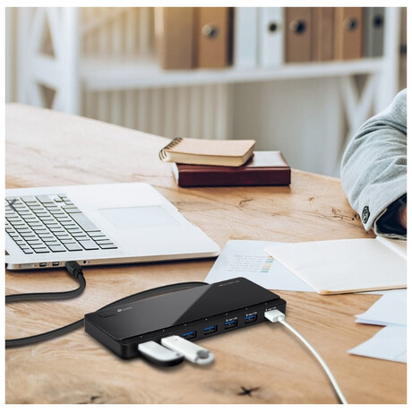 Το UH700 USB Hub είναι η ιδανική επιλογή για να επεκτείνετε τις θύρες USB του υπολογιστή σας ώστε να έχετε υψηλούς ρυθμούς μεταφοράς δεδομένων και διαθέσιμες θύρες για σύνδεση USB drive, ποντικιών USB, εκτυπωτών ή άλλων συσκευών. Οι θύρες USB 3.0 παρέχουν ταχύτητες μεταφοράς έως 5Gbps, 10 φορές ταχύτερες από του USB 2.0.Είναι τέλειο για οποιονδήποτε έχει υπολογιστή με μόνο μία ή δύο θύρες USB και θέλει ευκολότερη πρόσβαση σε πρόσθετες θύρες χωρίς να χρειάζεται εναλλαγή μεταξύ συσκευών.