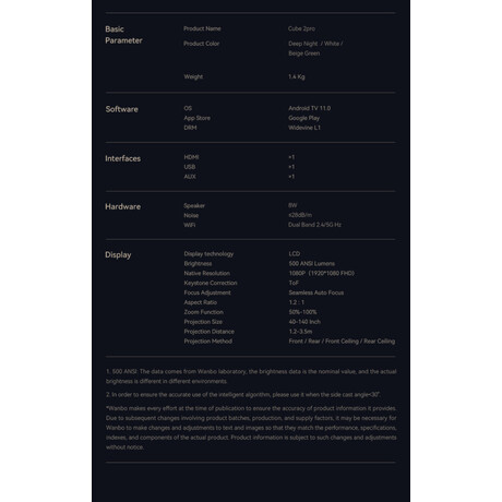 | Μοντέλο | Wanbo Cube 2 Pro Midnight Blue |