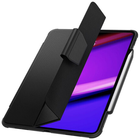 Θήκη της εταιρείας Spigen που κλείνει σαν βιβλίο και προσφέρει προστασία στο tablet σου από πτώσεις, γρατζουνιές κι άλλες φθορές. Η κατασκευή της από σιλικόνη την κάνει εύκαμπτη, επιτρέποντας τη συχνή τοποθέτηση κι αφαίρεση της σε αντίθεση με μια πλαστική που μπορεί να φθαρεί και προσδίδει σταθερό κράτημα. Είναι ανθεκτική καθώς διαθέτει ενισχυμένες γωνίες και ειδική ενίσχυση στο πίσω μέρος όσο και περιμετρικά για απορρόφηση κραδασμών από πτώσεις.