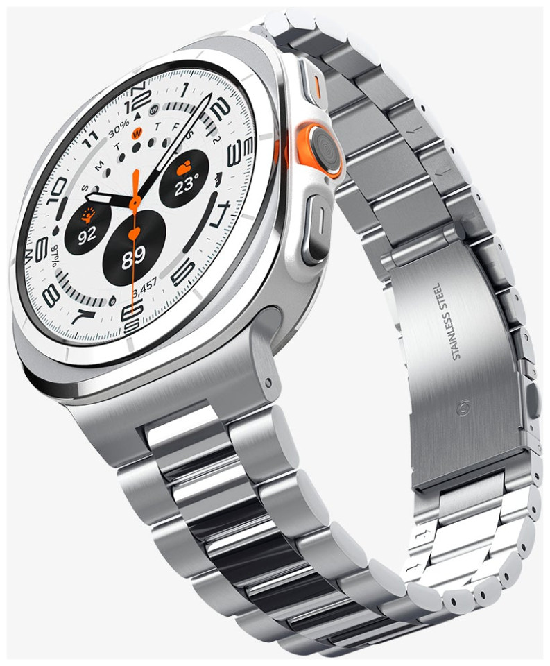 Stand the test of time. The Modern Fit 316L brings timeless aesthetics to your Galaxy Watch. Its tapered stainless steel band adds extra comfort while stealing glances every second. Remastered with seamless button connectors, streamlining installation like never before. Go where classic meets modern. We got you.