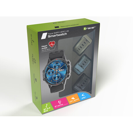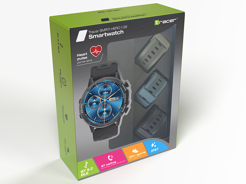 Το Tracer SMR11 HERO 1.39 συνδυάζει κομψότητα, αντοχή και τεχνολογία, ιδανικό για δραστήριους χρήστες. Διαθέτει οθόνη IPS 1,39” 360×360 px, ανθεκτικό μεταλλικό κάλυμμα, και υποστηρίζει Bluetooth 5.2 BLE για σύνδεση με smartphone. Το ρολόι προσφέρει ειδοποιήσεις κλήσεων και μηνυμάτων, Bluetooth Calling, φωνητικό βοηθό, και πλήθος αθλητικών λειτουργιών με καταγραφή θερμίδων, βημάτων και προγράμματα εκγύμνασης.