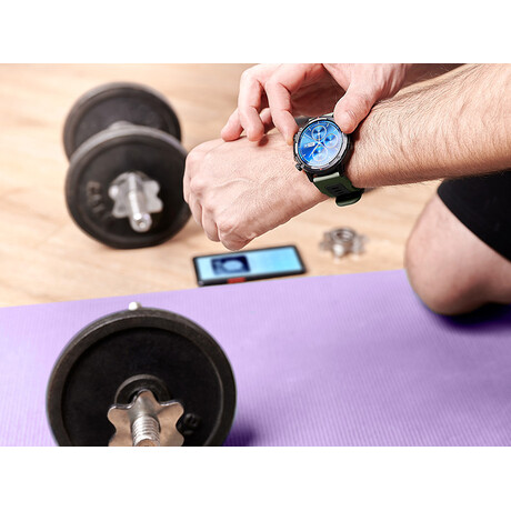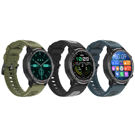 Το ρολόι περιλαμβάνει τρία λουράκια (μαύρο, μπλε, army green) και μπορεί να προσαρμοστεί με προσωποποιημένα watch faces, συνδυάζοντας στυλ και λειτουργικότητα σε κάθε περίσταση.