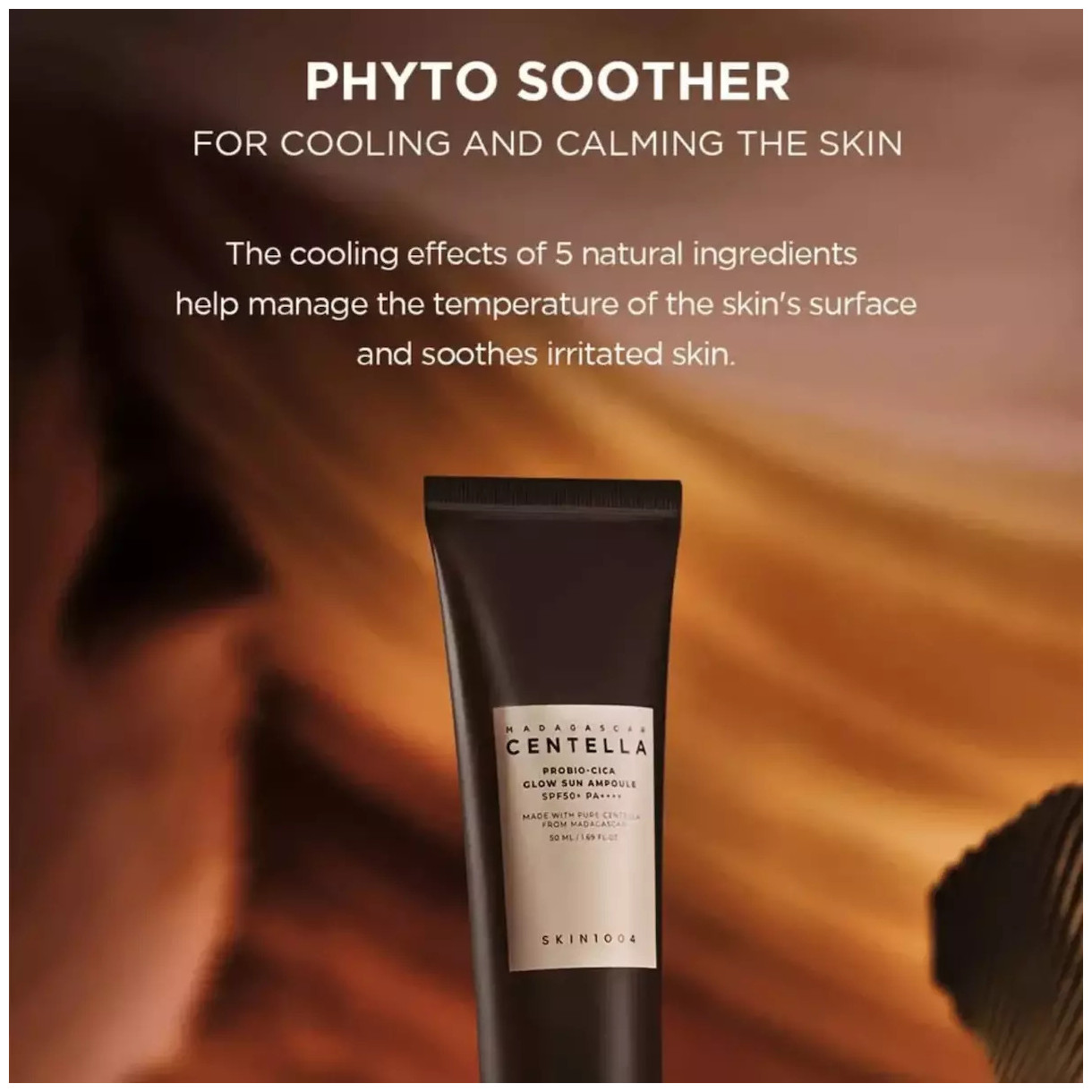 Το SKIN1004 Madagascar Centella Probio-Cica Glow Sun Ampoule είναι ένα αντηλιακό προϊόν που προσφέρει υψηλή προστασία από τις ακτίνες UVA και UVB με δείκτη SPF50+ PA++++. Συνδυάζει τις καταπραϋντικές ιδιότητες του εκχυλίσματος Centella Asiatica από τη Μαδαγασκάρη με ενυδατικά και αναπλαστικά συστατικά, παρέχοντας ολοκληρωμένη φροντίδα για την επιδερμίδα.