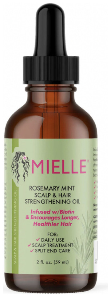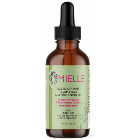 Το Mielle Organics Rosemary Mint Scalp & Hair Strengthening Oil 59 ml είναι μια θρεπτική, εντατική φόρμουλα που στοχεύει στην ενίσχυση της υγείας του τριχωτού και της τρίχας. Περιέχει βιοτίνη, έλαια με δενδρολίβανο και μέντα, καθώς και περισσότερα από 30 ενεργά συστατικά που ενυδατώνουν, δυναμώνουν, και ενισχύουν την ανάπτυξη των μαλλιών. Κατάλληλο για σύγχρονες styling τεχνικές όπως πλεξούδες, silk press και προστατευτικά στυλ, ενώ προσφέρει δροσερή αίσθηση και λάμψη. Είναι βραβευμένο από το Glamour Beauty & Wellness 2023 και είναι φιλικό προς τους καταναλωτές, χωρίς parabens, θειικά, παραφίνη, ορυκτά έλαια ή δοκιμές σε ζώα.