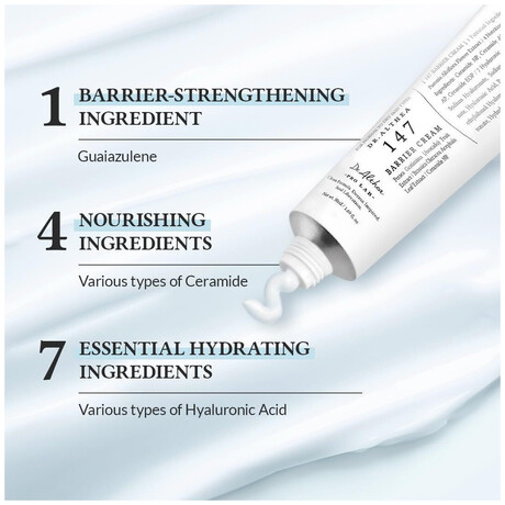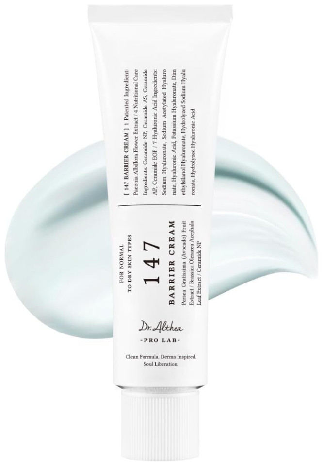 Η Dr. Althea 147 Barrier Cream είναι μια εντατική ενυδατική κρέμα σχεδιασμένη για την αποκατάσταση και ενίσχυση του δερματικού φραγμού. Η σύνθεσή της με 7 τύπους υαλουρονικού οξέος, 5 τύπους κεραμιδίων και φυτικά εκχυλίσματα προσφέρει βαθιά ενυδάτωση, καταπραΰνει τους ερεθισμούς και ενισχύει την ελαστικότητα του δέρματος. Η απαλή, παστέλ μπλε υφή της προέρχεται από το γουαϊαζουλένιο, ένα συστατικό με ισχυρή αντιφλεγμονώδη δράση.