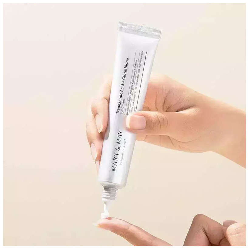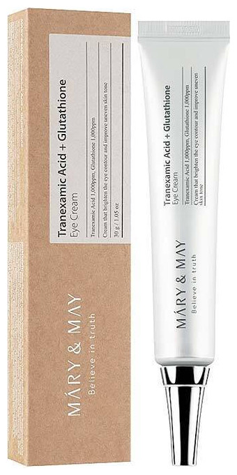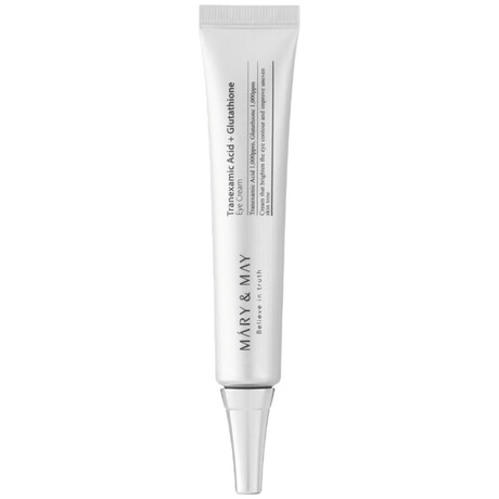 Κρεμώδης κρέμα ματιών από τη Mary & May, με Tranexamic Acid και Glutathione, που στοχεύει στη μείωση των μαύρων κύκλων και της υπερμελάγχρωσης, ενώ προσφέρει αντιοξειδωτική φροντίδα και αναζωογόνηση στην ευαίσθητη περιοχή γύρω από τα μάτια. Εμπλουτισμένη με βιταμίνη C και νιασιναμίδη, συμβάλλει στη βελτίωση του τόνου της επιδερμίδας και ενισχύει την ελαστικότητά της.