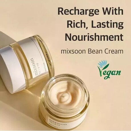 Η Mixsoon Bean Cream είναι μια ενυδατική κρέμα προσώπου από τη Νότια Κορέα, σχεδιασμένη να ενυδατώνει βαθιά, να θρέφει το δέρμα και να διατηρεί τη φυσική ισορροπία νερού-λίπους. Η σύνθεσή της περιλαμβάνει ζυμωμένα εκχυλίσματα σόγιας, ροδιού, αχλαδιού και άλλων φυσικών οργανικών στοιχείων, προσφέροντας αντιοξειδωτική προστασία, βελτίωση της υφής και αναζωογόνηση της επιδερμίδας.