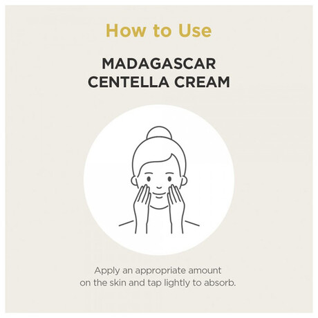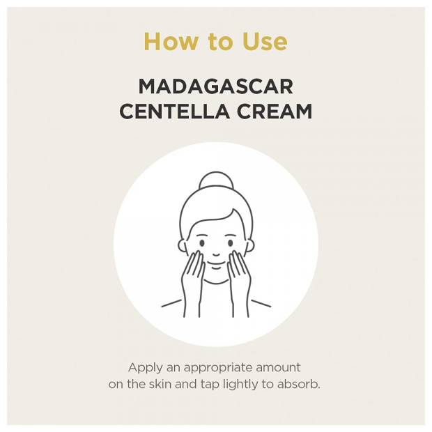 Η κρέμα Madagascar Centella δημιουργεί ένα λείο στρώμα υγρασίας και επιτρέπει στο δέρμα να συγκρατεί την υγρασία, προσδίδοντας μεταξένια υφή, ενώ συνδυάζει 4 φυσικά ενεργά συστατικά της Centella Asiatica σε ένα σωληνάριο. Άλλα συστατικά όπως το Ασιατικό οξύ, το Μαδεκασικό οξύ, η Ασιατικοσίδη και η Μαδεκασοσίδη προστατεύουν την επιδερμίδα από τους εξωτερικούς ρύπους και τους ρύπους που φράζουν τους πόρους.