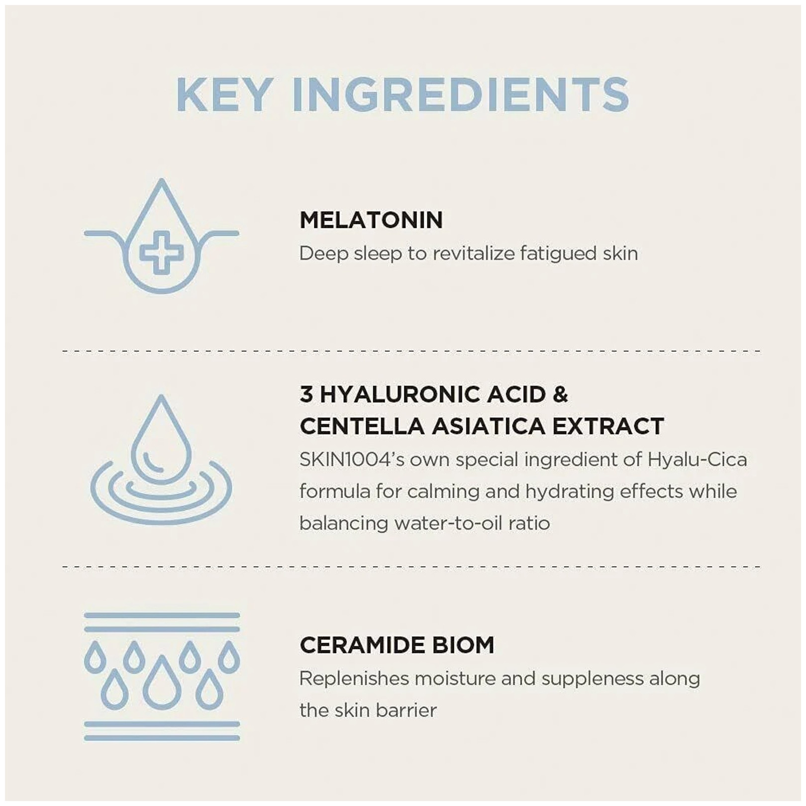 Αποκτήστε όμορφη επιδερμίδα κατά τη διάρκεια του ύπνου. Η μάσκα ομορφιάς SKIN1004 Madagascar Centella Hyalu-Cica Sleeping Pack καταπραΰνει και αναπλάθει την επιδερμίδα κατά τη διάρκεια της νύχτας. Χάρη στα δραστικά συστατικά όπως υαλουρονικό οξύ και σεντέλα ασιατική για ενυδάτωση και μελατονίνη για σύσφιξη, η επιδερμίδα αποκτά ξανά φρέσκια ​​και ξεκούραστη όψη.