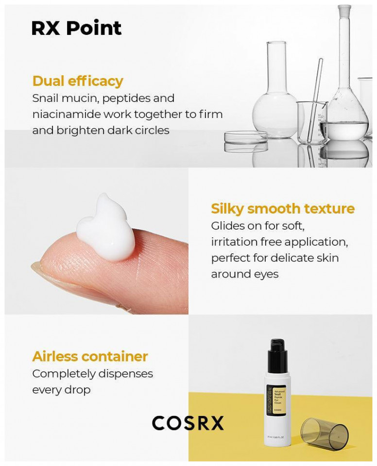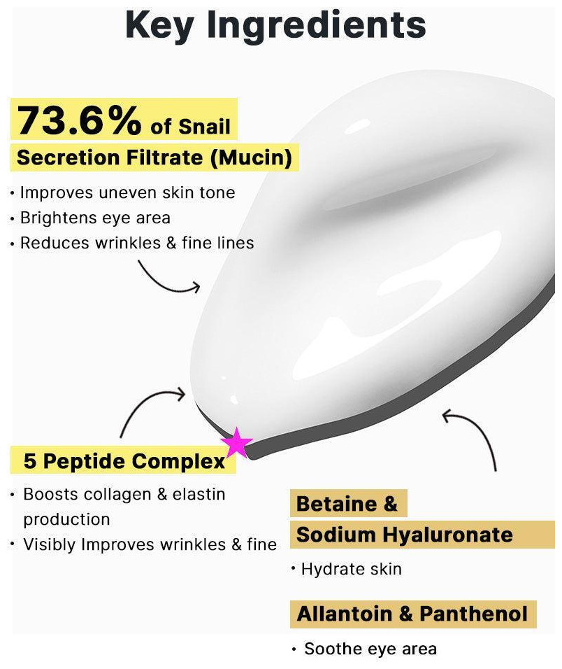 73,6% Διήθημα έκκρισης σαλιγκαριών: Ενυδατώνει, προστατεύει και βοηθά στην αναζωογόνηση της περιοχής των ματιών