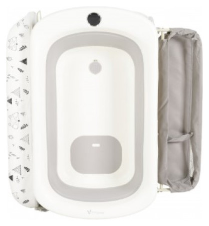 Κατάλληλο για παιδιά από 0 m+ έως 11 κιλά. Πτυσσόμενη μπανιέρα με έγχρωμο ψηφιακό θερμόμετρο -ένδειξη είναι έγχρωμη. Μπλε - η θερμοκρασία του νερού είναι πολύ κρύα, πράσινο - η θερμοκρασία του νερού είναι κατάλληλη για το μπάνιο του παιδιού, κόκκινο - η θερμοκρασία του νερού είναι πολύ ζεστή.Περιεχόμενο του μαξιλαριού αλλαγής.Πτυσσόμενο καλάθι αξεσουάρ. Σωλήνας αποστράγγισης. Ρυθμιζόμενα πόδια στήριξης σε 3 θέσεις. 2 τροχοί και 2 στοπ για εύκολη μετακίνηση. σταθερό μέρος του εμπορεύματος· ράφι