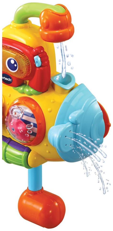 Ώρα για διασκέδαση με το υποβρύχιο VTech! Αυτό το εντυπωσιακό υποβρύχιο διαθέτει περιστρεφόμενο περσκόπιο που ψεκάζει νερό! Το μωρό σας μπορεί να ανακαλύψει και να εξερευνήσει τους 4 διασκεδαστικούς τρόπους που ψεκάζει νερό το περσκόπιο. Πατήστε τα φωτεινά γυαλιά για διασκεδαστικές φράσεις, μουσική, τραγούδια και άλλα! Απαιτούνται 3 μπαταρίες AAA. Κατάλληλο για παιδιά άνω του 1 έτους.