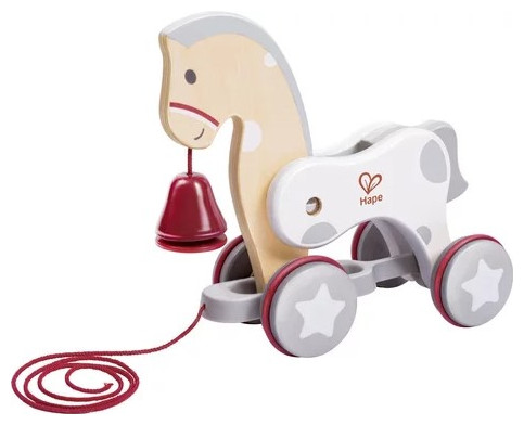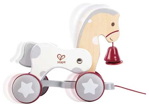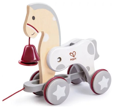 This cute horse moves its head back and forth as it runs, while the back of the body moves up and down. The head and body can wave like a real horse. Add a playful touch with a bell to attract children's attention: the bell rings when you push and pull the horse. Promotes dexterity, creativity and active play.