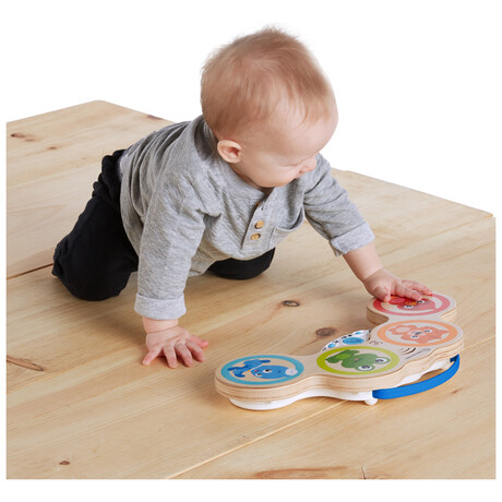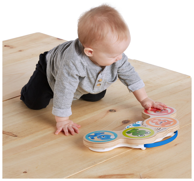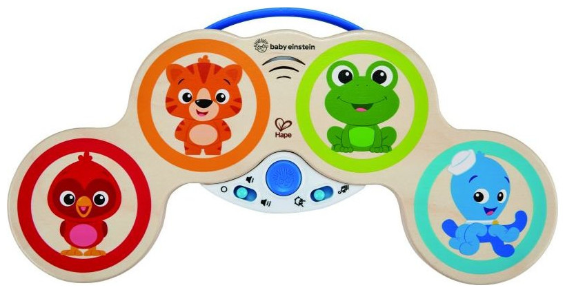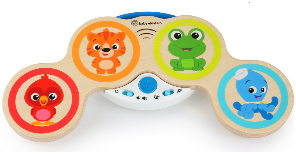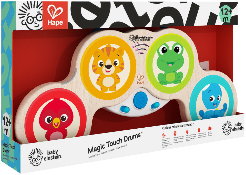 You’ll be listening to Mozart in the making as your baby plays and experiments with Baby Einstein and Hape’s Magic Touch Drums. Tap each of Baby Einstein’s friends to play a different note, and magic touch technology means there are no buttons needed! Baby toys that make music will encourage your rock star to think and act creatively. Two different modes mean there are lots of ways your little one can play or start composing his own hit melodies. The toy’s Drum Mode and Melody Mode let baby switch between playing along with classical tunes or moving to his own groove. Get ready to join in – playing the drums is just as fun for baby as it is for you too! And don’t worry about waking little brother or sister. The volume control buttons let you turn the music to “low” when you need to, or crank it up to “high” to rock out. At either volume, the higher end quality speakers make sure your baby’s beats sound just right.