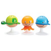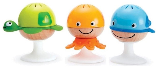 Babies will be enchanted by the Stay-put Rattle Set's differing sounds, bright colours and aquatic animals. Moreover, with their handy suction cups, playtime is possible anywhere, anytime!