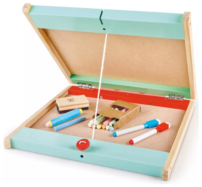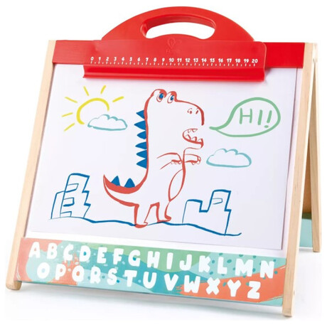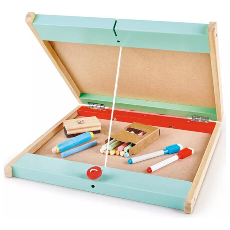 Βοηθήστε το παιδί σας να αναπτύξει τη δημιουργικότητά του με το επιτραπέζιο καβαλέτο Hape 3-in-1. Λειτουργώντας ως μαυροπίνακας με κιμωλία, μαγνητικός πίνακας και στιβαρή θήκη μεταφοράς, είναι τέλειο για έναν επίδοξο καλλιτέχνη εν κινήσει. Ο επιτραπέζιος πίνακας γραφικών διαθέτει έναν μαυροπίνακα με κιμωλία για σκαρίφημα και γραφή με κιμωλία και έναν πίνακα για μαρκαδόρους. Μια μαγνητική επιφάνεια επιτρέπει στον πίνακα να συγκρατεί μαγνητικά εργαλεία, αριθμούς και γράμματα (πωλούνται χωριστά), ιδανικά για παιχνίδια και μάθηση. Όταν δεν χρησιμοποιείται, το κιτ τέχνης διπλώνει σε μια ανθεκτική θήκη μεταφοράς που μπορεί να χωρέσει όλα τα αναλώσιμα και τα αξεσουάρ για την πλακέτα, κάνοντας συμπαγή αποθήκευση και εύκολη μεταφορά. Το σετ περιλαμβάνει 10 κιμωλίες διαφορετικού χρώματος, 2 μαρκαδόρους, 1 θήκη κιμωλίας και 1 γόμα σανίδων για να μεγιστοποιήσετε την καλλιτεχνική ικανότητα του μικρού σας. Διαθέτοντας όλα τα εργαλεία που απαιτούνται για την καλλιτεχνική έκφραση, Το μικρό σας θα λατρέψει αυτόν τον βολικό πίνακα τέχνης 2 όψεων. Ιδανικό για έργα τέχνης στο σπίτι και σχολικά τραπέζια, το επιτραπέζιο καβαλέτο Hape 3-in-1 είναι μια τέλεια προσθήκη στο κουτί παιχνιδιών σας.