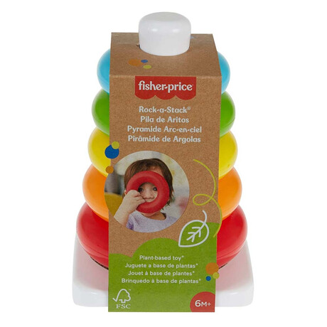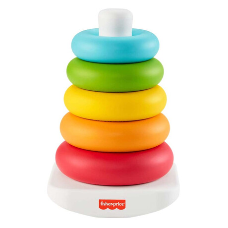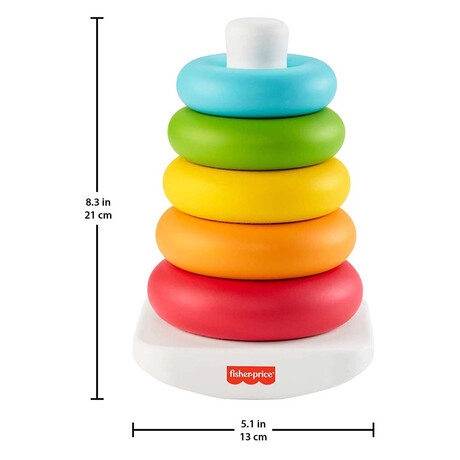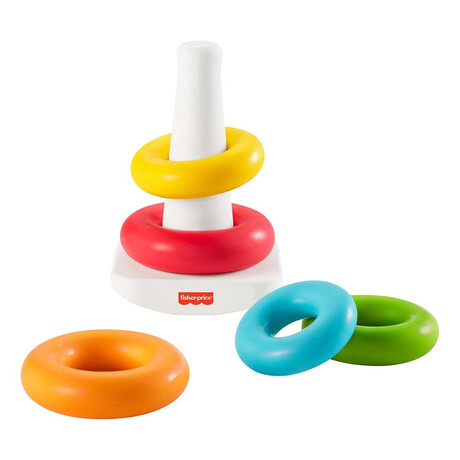 Ποιος κρίκος θα μπει στην κορυφή; Η Πυραμίδα Fisher-Price® από υλικά φυτικής προέλευσης* είναι ένα κλασικό παιχνίδι για μωρά. Αποτελείται από κουνιστή βάση και 5 χρωματιστούς κρίκους που μπορούν να πιάσουν και να στοιβάξουν τα μικρά χεράκια. Η διαδικασία αυτή αναπτύσσει τον συντονισμό όρασης-κίνησης χεριών και τους μαθαίνει την έννοια του μεγέθους, καθώς στοιβάζουν τους κρίκους από τον μεγαλύτερο προς τον μικρότερο!