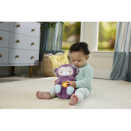 Το απαλό λούτρινο Μαϊμουδάκι Αγκαλιάς της Fisher-Price είναι σχεδιασμένο για να προσφέρει στα μωρά μια μοναδική αίσθηση ηρεμίας και ασφάλειας. Με ρυθμική κίνηση που μιμείται την αναπνοή και χαλαρωτική μουσική, βοηθά το παιδί να χαλαρώσει, να ηρεμήσει και να αποκοιμηθεί πιο εύκολα — σαν να το κρατά κάποιος σε απαλή αγκαλιά.