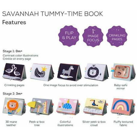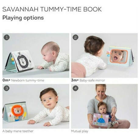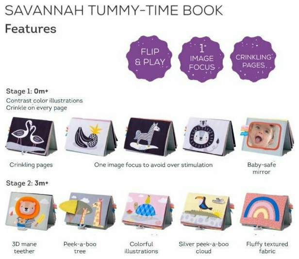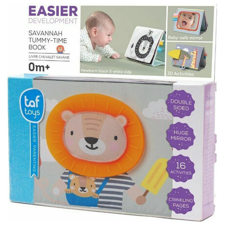 Πλευρά 1: Τα χρώματα υψηλής αντίθεσης, ο βρεφικός καθρέφτης ασφαλείας και οι ζωγραφιές προσώπου επιτρέπουν στο μωρό να εστιάζει σε μία εικόνα κάθε φορά και να ελαχιστοποιεί τη διέγερση. Βοηθά στην ανάπτυξη των αισθήσεων και της συναισθηματικής νοημοσύνης του μωρού.