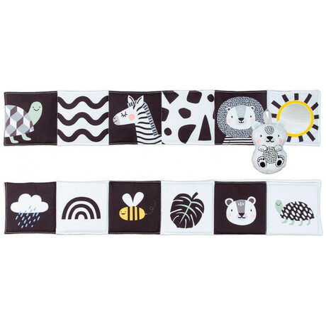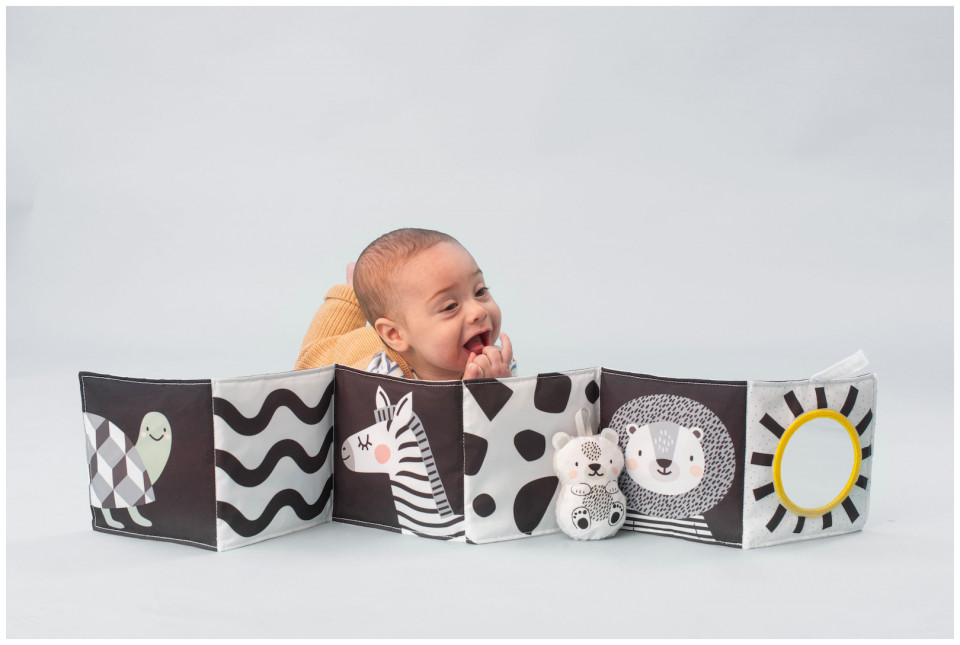 Ένα ασπρόμαυρο βιβλίο διπλής όψης απαλό, τσαλακωμένο μωρό για πρώιμα στάδια με υπέροχες ασπρόμαυρες εικονογραφήσεις από τη συλλογή μας Savannah, καθρέφτη ασφαλή για μωρά, υφές πολλαπλών αισθήσεων και το υπέροχο τσαλακωμένο Libby the cub. Παρέχει οπτική διέγερση, βοηθά στην ανάπτυξη των αισθήσεων και της συναισθηματικής νοημοσύνης του μωρού. Στην Taf Toys καταλαβαίνουμε ότι η επιλογή του κατάλληλου αναπτυξιακού παιχνιδιού για το παιδί σας είναι μια σοβαρή απόφαση. Η μεγάλη γκάμα προϊόντων της Taf Toys σας παρέχει αναπτυξιακά παιχνίδια που αντιστοιχούν στην ηλικία του μωρού σας και που είναι προκλητικά, διασκεδαστικά και εμπνέουν τη φαντασία. Όλα τα παιχνίδια μας έχουν δημιουργηθεί με σκοπό να προωθήσουν τη συναισθηματική, γνωστική και σωματική ανάπτυξη του μωρού σας κατά τα δύο πρώτα χρόνια ανάπτυξής του. Στόχος μας είναι να βοηθήσουμε το μωρό σας να δημιουργήσει τα θεμέλια για μια υγιή και ευτυχισμένη αναπτυξιακή πορεία. ελαφρύ αναδιπλούμενο εύκολο να διπλωθεί